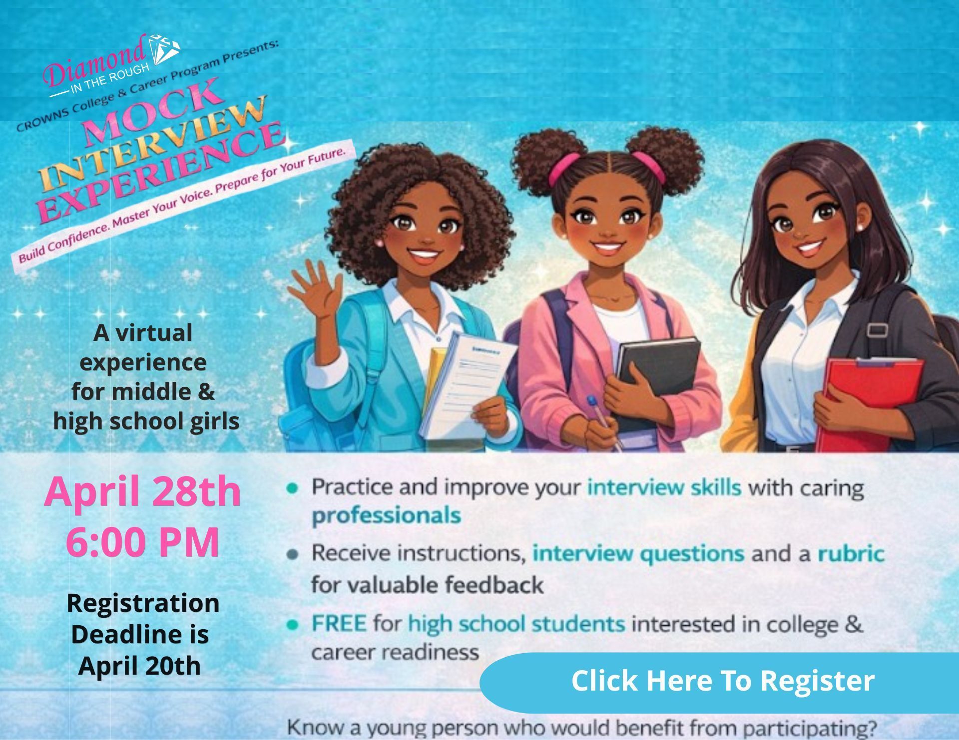 Since its inception in 2004, Diamond In The Rough has positively impacted the lives of girls and families through its award-winning mentoring, leadership, college & career and family enrichment activities.